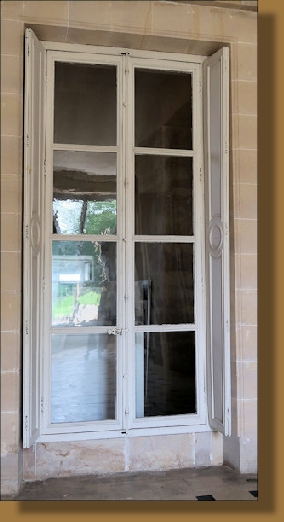 Le château de Ménoray conserve un bel ensemble de croisées qui éclaire la longue galerie occupant tout le deuxième niveau de l'aile ajoutée dans les années 1720 au logis principal édifié au XVIIe siècle. Au vu de leurs grands carreaux, il s'agit d'une deuxième génération de menuiseries extérieures venue remplacer la première à petits carreaux. Ce n'est pas cette caractéristique, somme toute classique, qui nous intéressait pour envisager cette étude, mais plutôt la persistance en Bretagne d'un ferrage des volets sur les vantaux vitrés, méthode abandonnée ailleurs depuis longtemps au profit d'un montage plus étanche des volets sur le bâti dormant. Si le château de Ménoray est le fruit d'une évolution complexe qui demande une lecture approfondie pour en déceler les étapes, nous verrons que ses croisées ne sont pas en reste et qu'elles aussi nécessitent une analyse détaillée et méticuleuse pour en comprendre la conception et tenter de les dater.