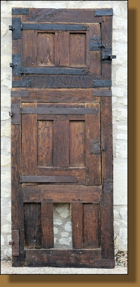 Etude d’un vantail de porte à lames jointives du XVIIe siècle découvert dans la maison-forte de la Faverie à Saint-Fraimbault (Orne). Exceptionnellement bien conservé, il se distingue par ses éléments taillés à la hache ou à l’herminette, plutôt que corroyés à la varlope. L’absence de parement de référence, habituellement nécessaire pour le traçage et la réalisation, nous a poussé à analyser ses caractéristiques pour reconstituer son énigmatique processus de fabrication.