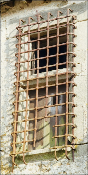 Ce logis seigneurial, daté de la fin du XVe siècle, s'adosse à un auditoire de justice construit quelque cent ans auparavant. Il possède encore dans deux de ses demi-croisées des éléments significatifs de ses clôtures primitives. Une première conserve une bonne partie de ses châssis (A) et une seconde le seul châssis (B) de son compartiment du haut. Au-delà, une petite fenêtre sans division est toujours munie de son volet d'origine (C). Malgré leur dégradation, l'ensemble de ces éléments permet de restituer avec fiabilité une demi-croisée et d'étudier de rares témoins de cette époque.