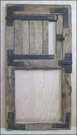 L'édifice en cours de restauration conserve plusieurs vestiges de châssis de fenêtres mais nous nous intéresserons ici aux deux qui proviennent assurément de la première campagne de travaux. Le premier était situé dans le compartiment inférieur d'une croisée et le second dans le compartiment supérieur d'une demi-