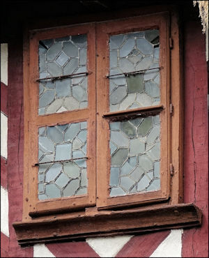 Perchée à une dizaine de mètres et murée depuis l'intérieur, cette petite fenêtre n'était guère accessible avant la réhabilitation de l'hôtel. C'est probablement ce qui l'a sauvée à maintes reprises et notamment lors du dramatique incendie de Rennes en 1720. Constituée d'éléments en réemploi, elle reste mystérieuse, mais offre un des derniers témoignages d'un type appelé aujourd'hui fenêtre « à l'anglaise » dont l'usage était pourtant des plus développés sur les façades à pan de bois de Rennes. Les photographies du début du siècle dernier en offrent quelques exemples, le plus spectaculaire étant celui de la maison dite de « Du Guesclin », mais aucune étude n'avait permis d'en détailler la réalisation. Totalement conservée dans sa conception initiale, elle nous permettra de mettre en lumière ce type particulier et d'en montrer les usages à Rennes et parfois au-