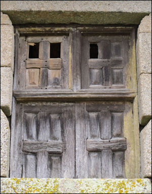 Ce petit châssis montre deux des trois caractéristiques propres aux croisées bretonnes des XVIe et XVIIe siècles, à savoir : une division en trois compartiments et une absence de vantaux vitrés. La réalisation des bâtis des volets avec des éléments de fort équarrissage, troisième trait significatif de ces ouvrages, n'est pas ici remarquable, même si la place occupée par les panneaux reste modeste. Plus original est le retour de la moulure du meneau et du croisillon en périphérie de son bâti dormant. Nous verrons qu'il permet d'avoir une pièce d'appui « naturelle » encore peu employée à cette époque.